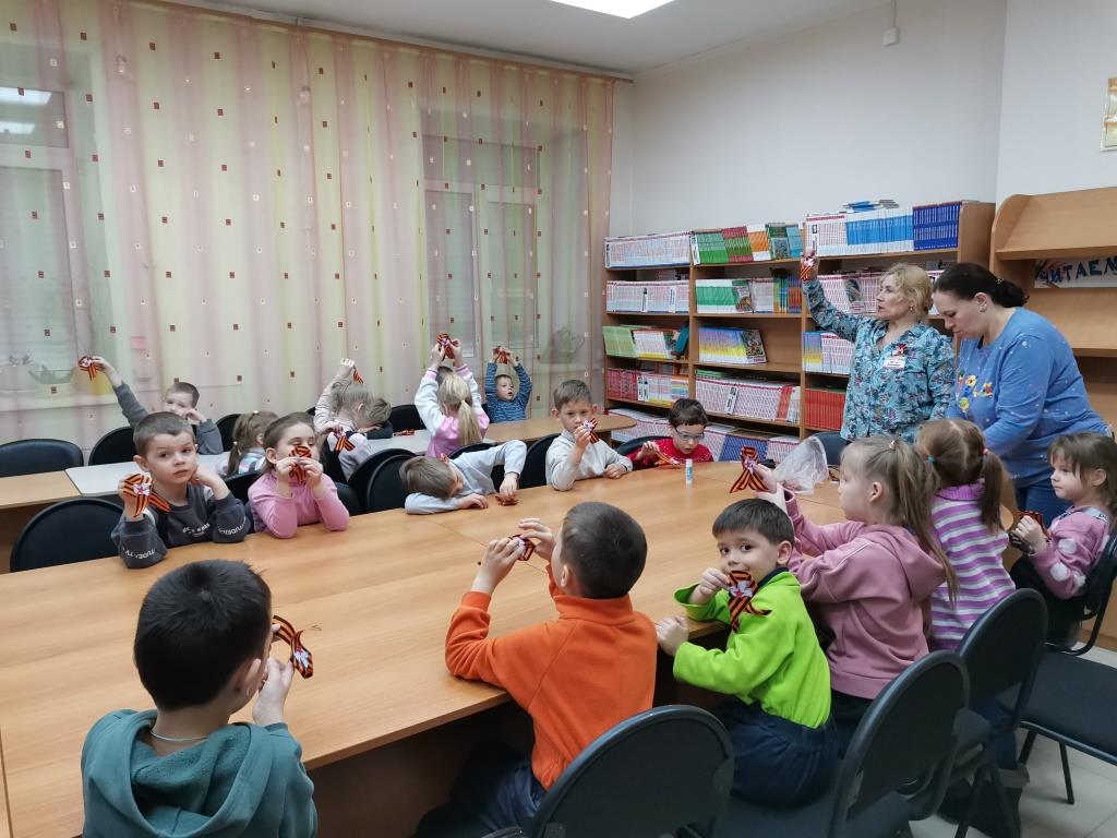 Первыми в акции приняли участие воспитанники МБДОУ № 25 «Родничок». Для дошколят библиотекари подготовили познавательную мини-викторину «Что ты знаешь о войне?» и мастер-класс по изготовлению броши из георгиевской ленты.