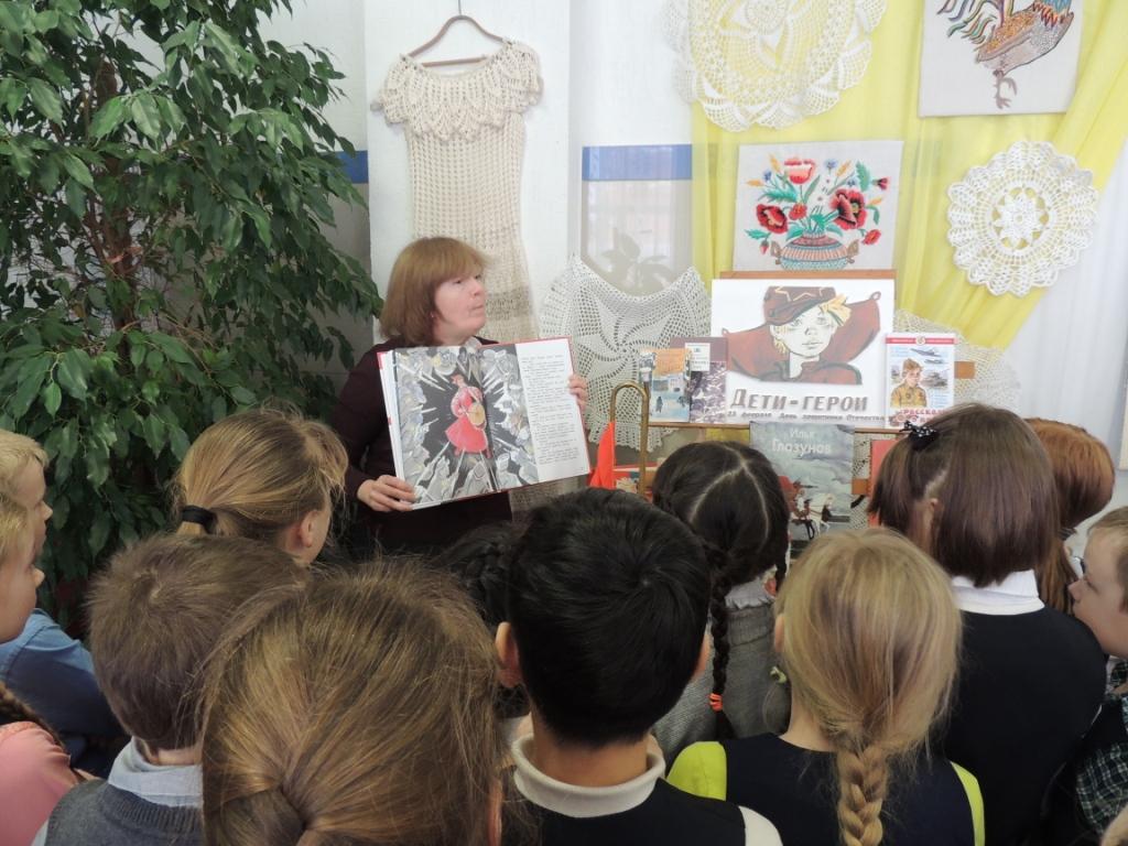 Для младших школьников была подготовлена увлекательная игра, в которой от ребят требовалось быстро отвечать на вопросы, решать всевозможные военные ребусы, при помощи смекалки и находчивости выполнять практические задания. Помимо игры, для школьников была подготовлена выставка, посвященная юным героям ВОВ. Каждый из ребят мог воспользоваться выставкой, как «шпаргалкой». На многие вопросы игроки могли найти ответ на выставке. В заключение игры школьникам было предложено выполнить простую, но яркую поздравительную открытку.
