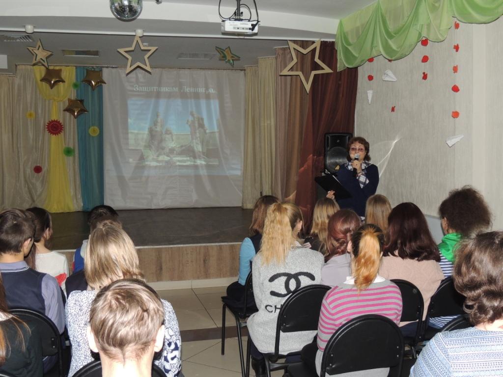 Для старшеклассников был подготовлен урок мужества «Непокоренный Ленинград», посвященный памяти блокадного Ленинграда – одной из самых трагических страниц в истории нашей страны: 900 дней блокады, 900 дней мужества.