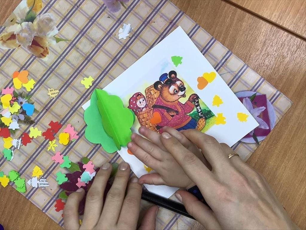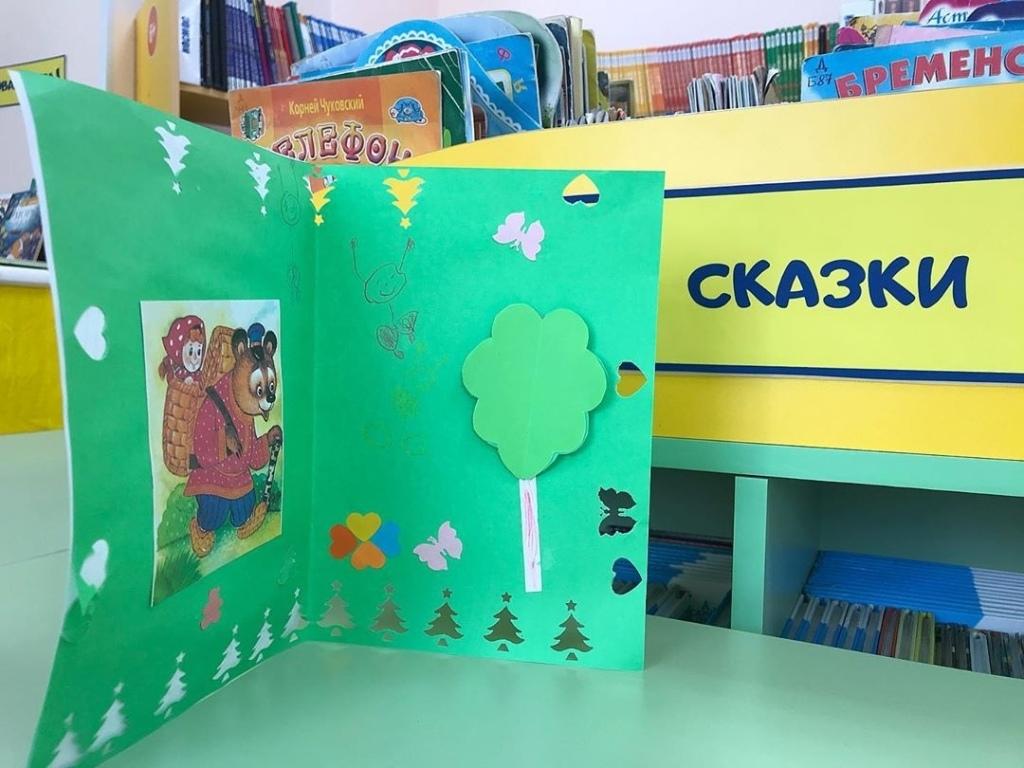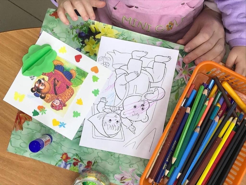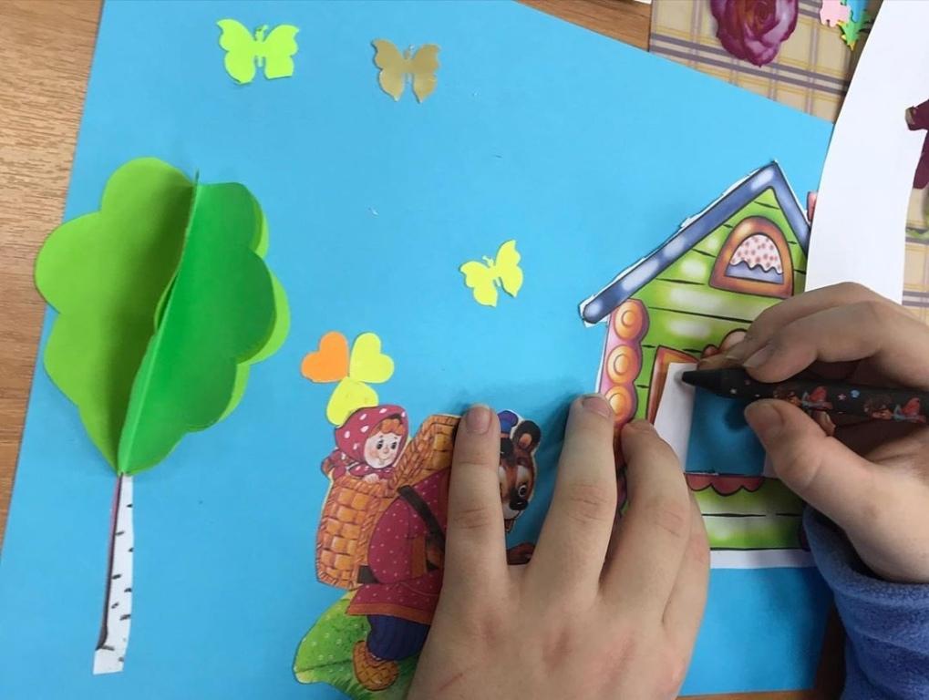 В своих работах ребята изобразили домик Медведя, украсили его территорию деревьями и бабочками, превратив всё это в открытки, которые взяли с собой домой.