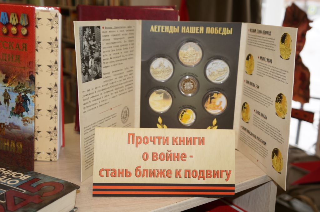 На выставке присутствует эксклюзивный материал – папка-блистер, в которой размещены выпущенные к 75-летию войны медали, посвящённые легендам победы в Великой Отечественной войне. На выставке отражена наглядная фактографическая информация о Великой Отечественной войне, а также, подготовленные библиографом библиотеки, рекомендательные списки художественной литературы о войне для ребят младшего и среднего школьного возраста, книжные закладки, посвящённые писателям Великой Отечественной войны. На выставке расположились предметы времён Великой Отечественной войны, что делает выставку более привлекательной для ребят – читателей библиотеки.