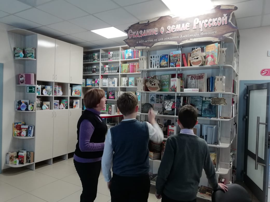 Вместе с библиотекарем ребята совершили путешествие по выставке «Сказание о Земле русской», на которой представлены книги, статьи из журналов, посвящённые этой исторической личности, его героическим битвам. Большой интерес у ребят вызвала книга издательства «Лабиринт» авторов Беляевой Е., Новичковой Е. «Ледовое побоище». Книга красочная, яркая, имеет иллюстрации в 3D формате.