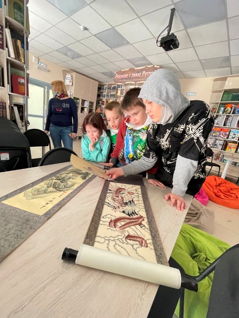 Рассмотрев изображение главной героини познавательного часа в живописи, наши гости захотели увидеть её и на экране: про Хуа Мулань есть множество фильмов, два мультфильма и даже один полноценный сериал. Конечно же, дети отдали своё предпочтение анимационному воплощению образа мужественной женщины и с огромным интересом посмотрели фрагмент мультфильма компании Walt Disney «Мулан» (1998 года).