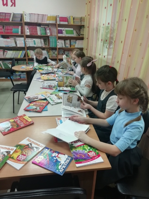 Ребята познакомились с новыми сериями познавательной литературы. Каждый выбрал для себя энциклопедию. За отведенное время дети изучили понравившуюся статью или небольшую заметку в книге, а затем поделились новыми знаниями о каком-то интересном факте с одноклассниками.