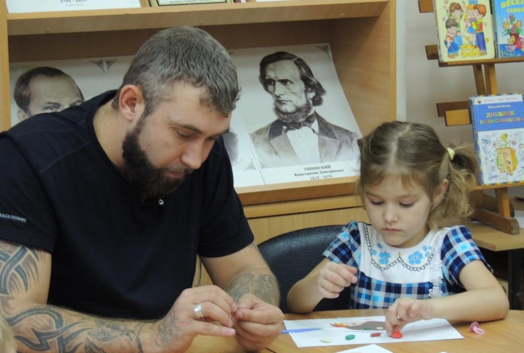 Маленькие читатели послушали русскую народную сказку «У страха глаза велики», посмотрели кукольный спектакль «Еж, медведь и зайца», поиграли с кукольными ежиком и медведем в познавательные игры. Зайцы из кукольного театра приготовили загадки про лесных животных. В завершение праздника все погрузились в творческую мастерскую. Дети с родителями сделали пластилиновую аппликацию на тему осени.