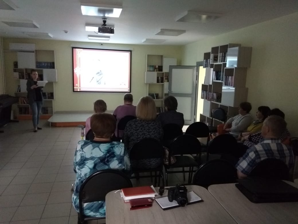 Сотрудники Информационно-досугового центра Жукова Алёна Владимировна и Гуреева Олеся Александровна рассказали об актёрах участвовавших в ВОВ, а также показали отрывки из самых известных советских военных фильмов.