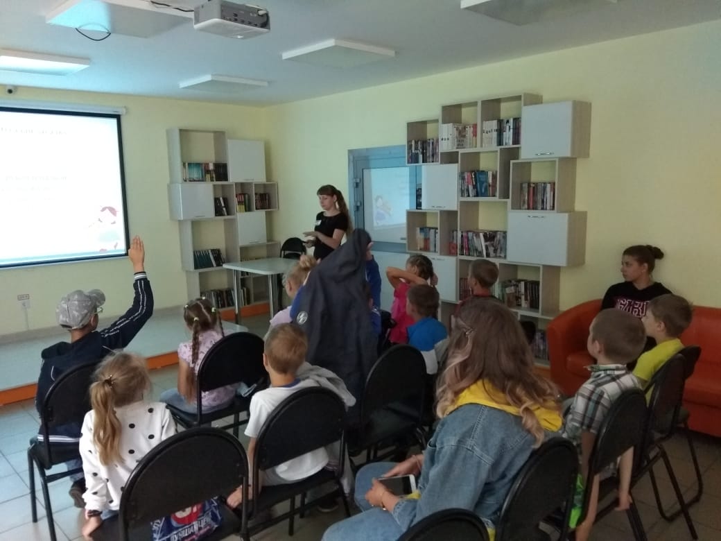 19 июля в Информационно-досуговом центре прошла очередная презентация-викторина по стихотворениям С.Я. Маршака для ребят лагеря дневного пребывания школы №2. Дети вспомнили стихотворения поэта, главных героев, а также отгадали все загадки. В конце мероприятия ребятам был показан мультфильм «Сказка о глупом мышонке». Его школьники смотрели с большим интересом. После просмотра дети вместе с ведущими обсудили как правильно должен был повести себя главный герой мультфильма.