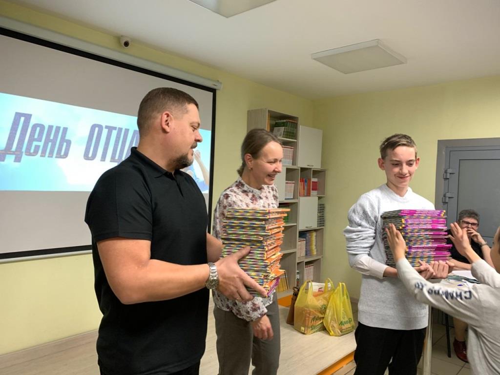 Игрокам предстояло ответить на вопросы, связанные с историей и традициями празднования «Дня отцов» в России, расшифровать названия сказок. Не обошлось и без современных технологий: участники должны были отгадать персонажа из русских народных сказок, которого нарисовали с помощью нейросети. Для прохождения финального испытания каждая команда выбрала самого сильного игрока. Им предстояло удержать как можно больше книг в своих руках.