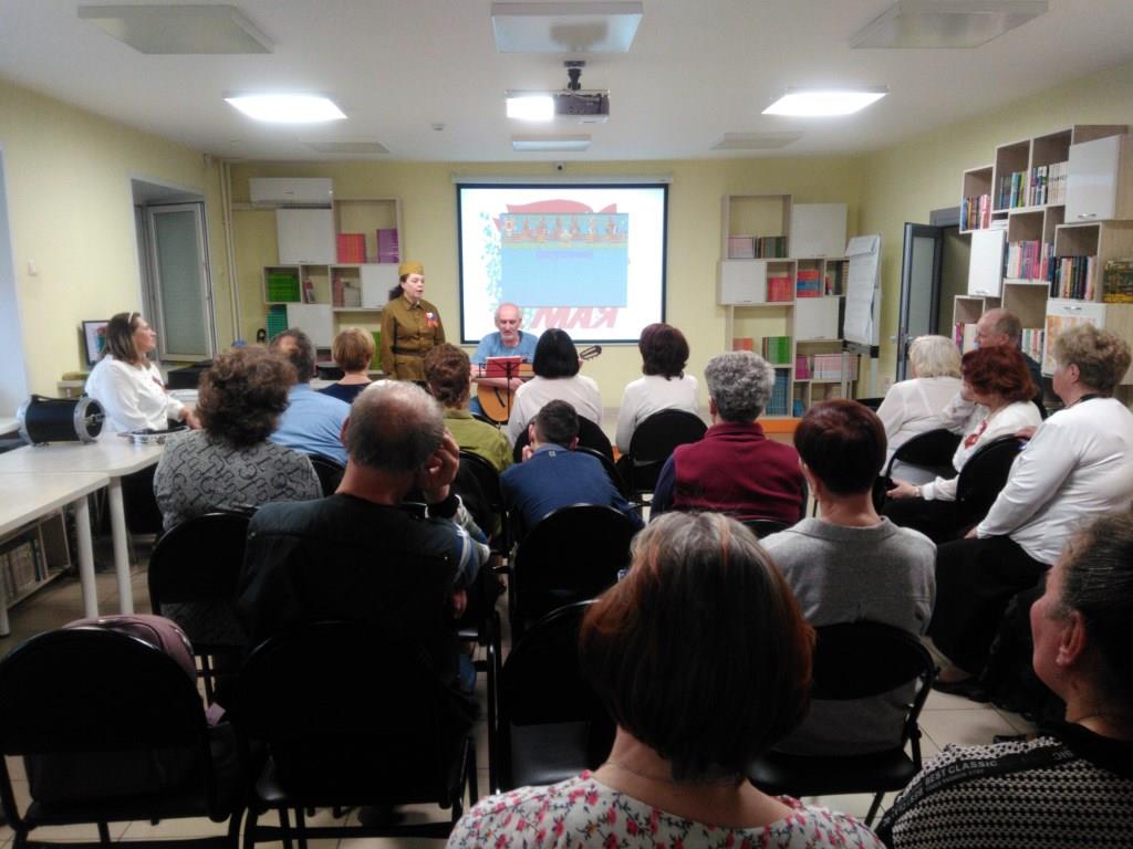 Память о событиях Великой Отечественной войны передается от поколения к поколению в стихах и песнях. На встрече прозвучали известные и любимые всеми стихи А. Суркова, А. Твардовского, К. Симонова, свои произведения представили междуреченские поэты А. Козликин, Н. Пешехонова, Л. Подхватилина, С. Шевцова. Глубоко тронуло слушателей стихотворение «Дети Ленинграда» Д. Булавинцева в исполнении Шитиковой Юлии.