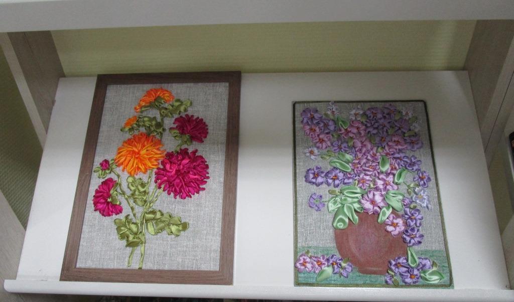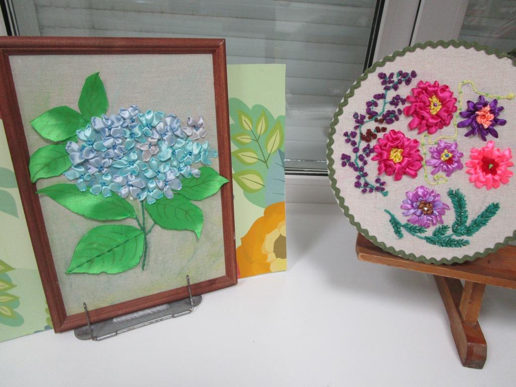 Полюбоваться чудесными работами мастериц и овладеть техникой вышивки атласными лентами можно на занятиях кружка в Информационно-досуговом центре каждый вторник с 11_00 до 12:00.