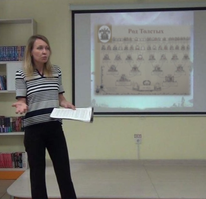 Специально для проходящей встречи библиотекари разработали презентацию-путеводитель по литературному миру Толстых, чтобы уже никогда больше не путать автора «Петра I» и «Князя Серебряного».