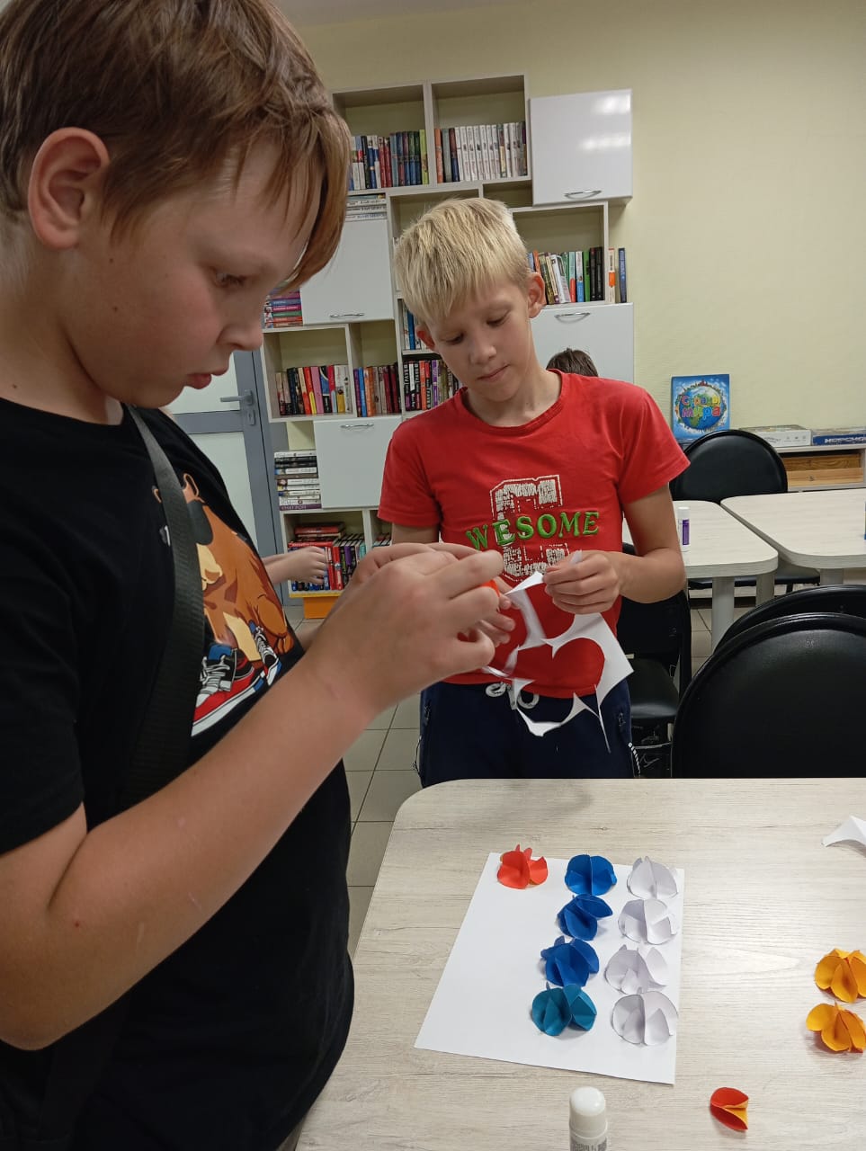 Во второй половине встречи был организован мастер-класс по изготовлению флага РФ в технике оригами из цветной бумаги.