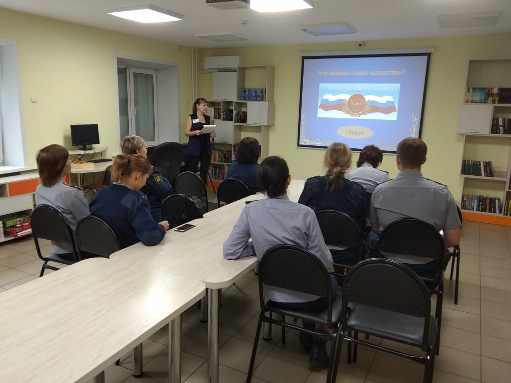 Две встречи в честь праздника Дня народного единства состоялись в Информационно-досуговом центре (ул. Комарова, 2а) 31 октября. Мероприятие «Вместе мы едины» посетили сотрудники Уголовно-исполнительной инспекции ГУФСИН России по Кемеровской области, а также клуб «Мой мир» центр «Семья».