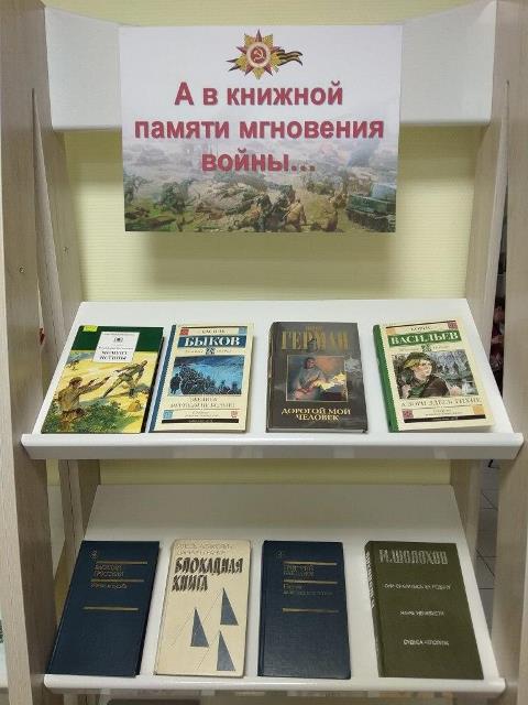 Книжная выставка «А в книжной памяти – мгновения войны…», посвященная Победе в Великой Отечественной Войне, работает в Информационно-досуговом центре.
