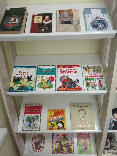 На выставке представлены сборники зарубежных поэтов, поэтов XVIII века, Золотого и Серебряного веков нашей литературы, а также поэзия наших современников. Отдельно оформлен раздел литературы для маленьких читателей.