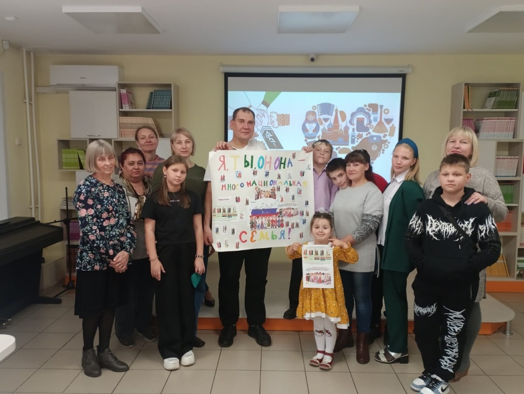 В заключение встречи и взрослые, и дети составили вместе плакат на тему «Единая семья – единая страна».
