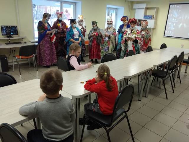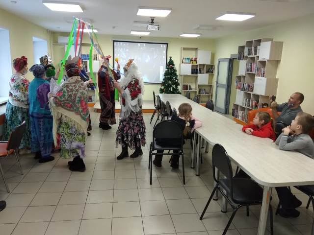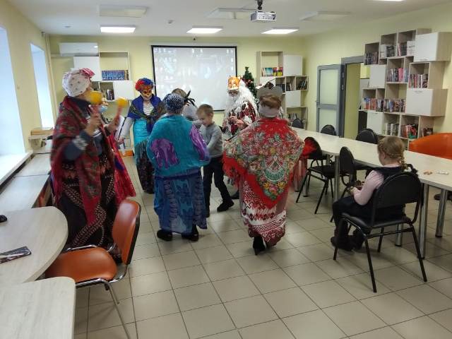 Библиотекарь центра рассказала присутствующим немного об истории и обычаях зимних праздников, волонтёры организации «Серебряный возраст» играли с детьми в колядки, загадывали загадки, закончилось мероприятие весёлым хороводом.