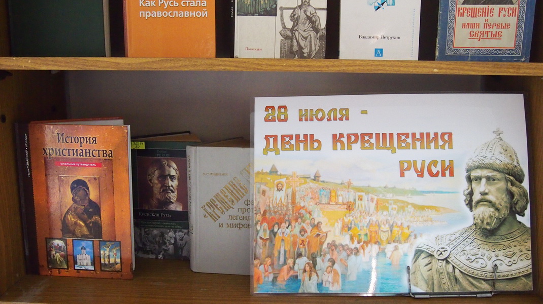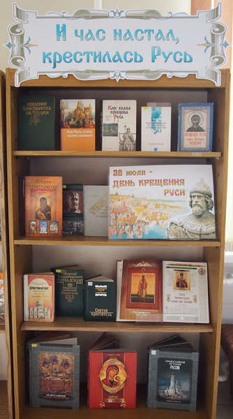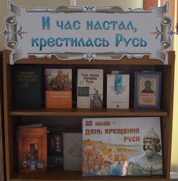 В преддверии этой памятной даты, в Центральной городской библиотеке начала свою работу выставка-история «И час настал, крестилась Русь». Выставка состоит из двух разделов, первый из которых посвящен истории крещения Руси. Представленные здесь материалы помогут читателям узнать об истории крещения Руси, понять, насколько это событие было исторически предопределено и какие трудности пришлось преодолеть, пока христианство окончательно не победило языческие верования, о том, какую историческую значимость оно имело и как повлияло на дальнейшее развитие страны. Так, книга «Как была крещена Русь», предлагает читателю яркий, увлекательный рассказ о трудном и во многом еще загадочном периоде, когда христианство стало официальной религией Русского государства.
