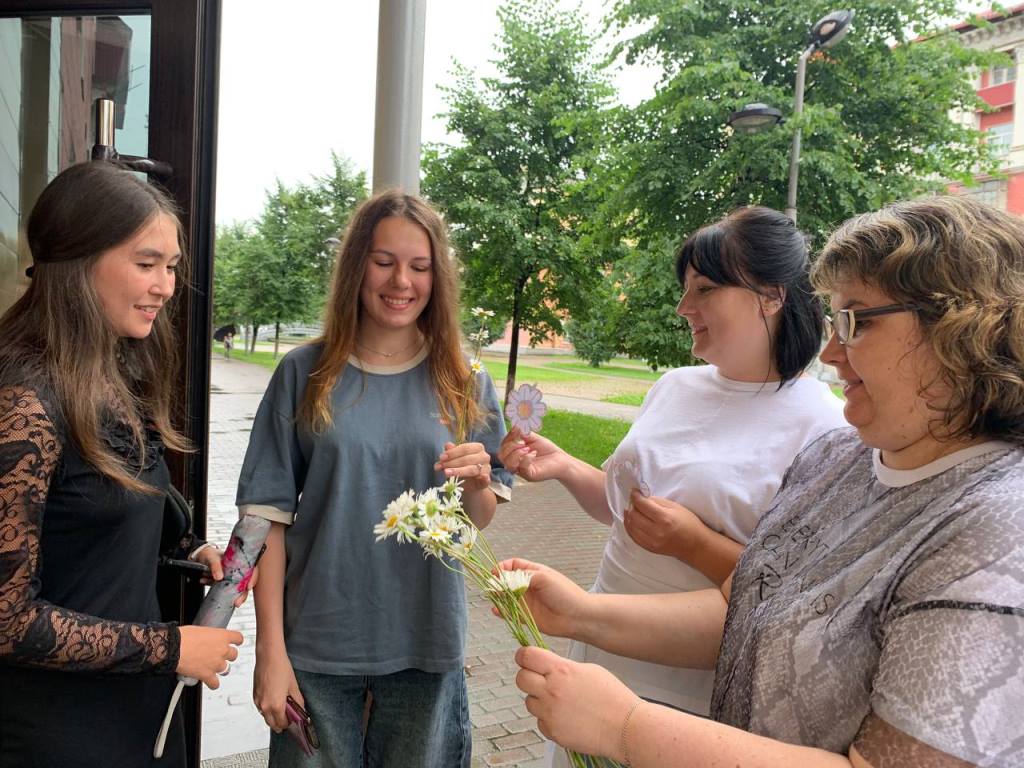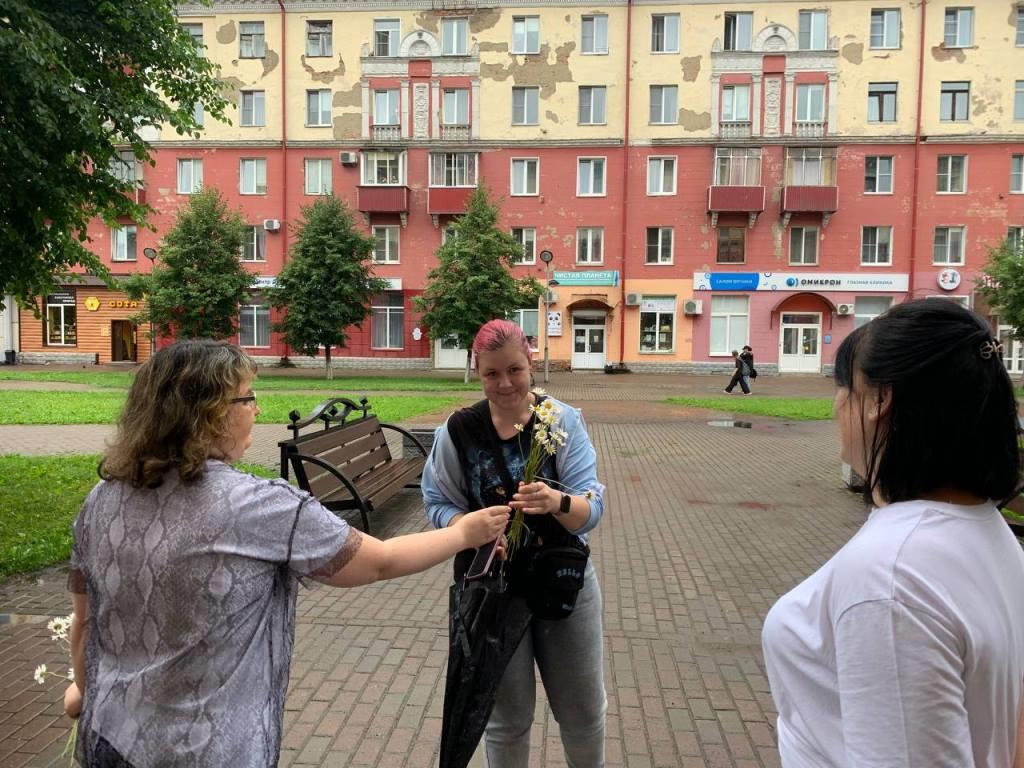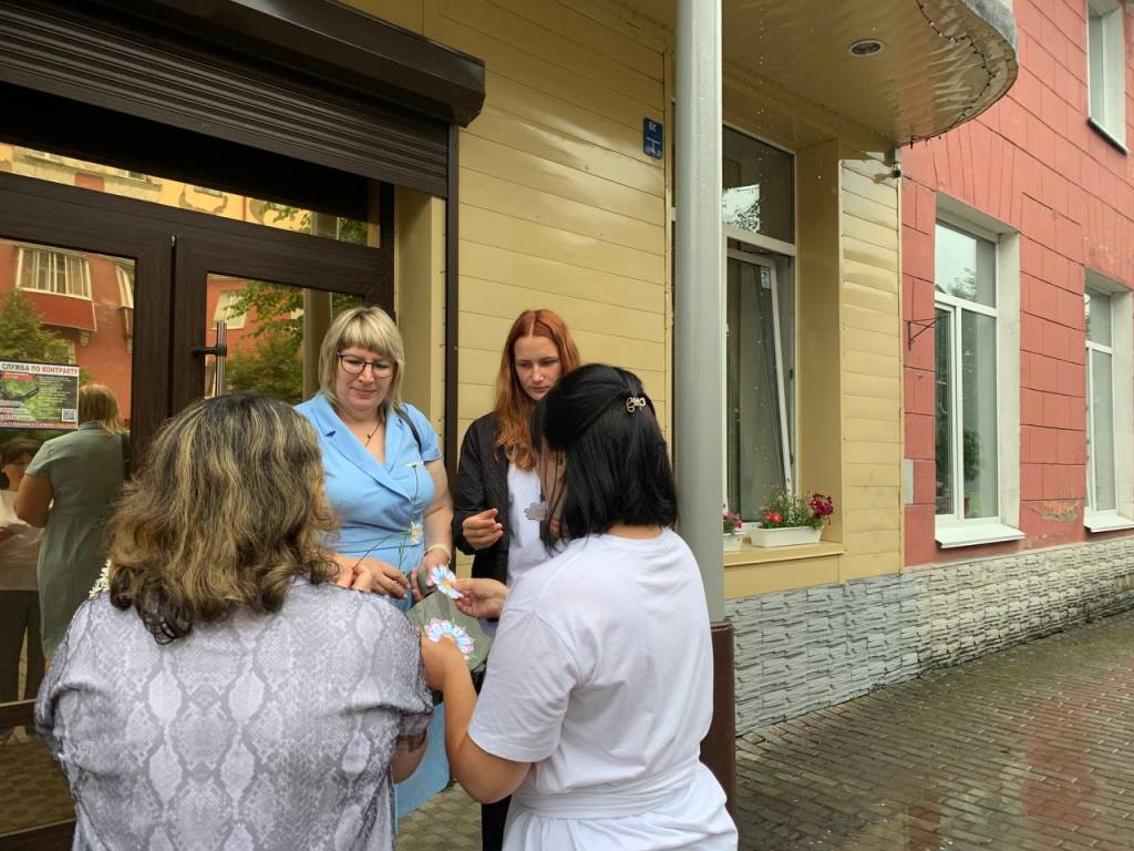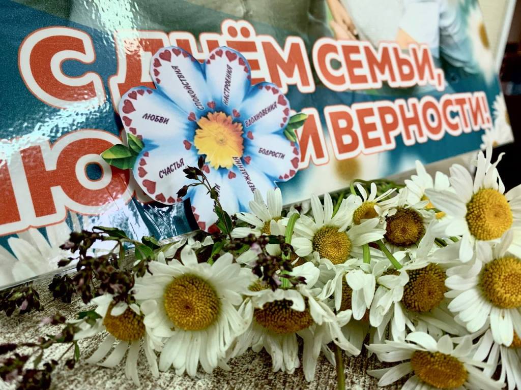 В этот день сотрудники Центральной городской библиотеки вышли на проспект Коммунистический, чтобы напомнить жителям города об этом празднике и раздать символ счастья – ромашку с поздравлениями и пожеланиями, сделанную из бумаги. Ромашка стала символом праздника неслучайно: в эти дни в полях и лугах цветут ромашки, а на Руси этот цветок издавна считается символом любви. Вручение ромашек сопровождалось не только словами пожеланий, но и призывом хранить друг друга, жить в ладу и гармонии.