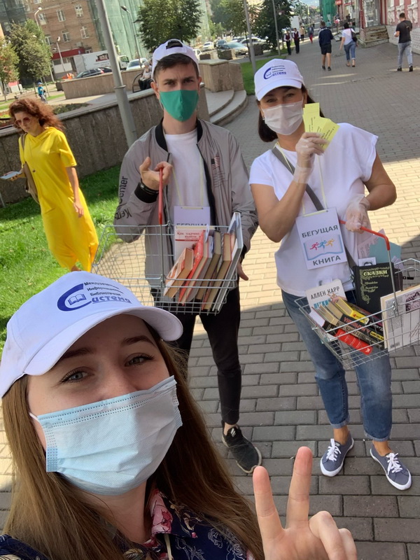 1 сентября библиотекари Междуреченска приняли участие в осеннем всероссийском забеге "БЕГУЩАЯ КНИГА – 2020". Акция нацелена на популяризацию библиотек как инновационного, креативного пространства, места для познавательного досуга и одного из центров культурной жизни. Забег призван внести свой вклад в поддержание имиджа России как «самой читающей страны». Библиотекари Междуреченска уже второй год подряд присоединяются к инициативе своих коллег, и следует отметить, что в этом году участников акции стало гораздо больше. Участники акции ЦГБ пробежались по проспекту Коммунистическому, задавая прохожим вопросы из школьной программы и даря книги за правильные ответы.
