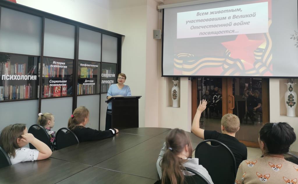 Патриотический час «Четвероногие солдаты», посвящённый 80-летию Победы в Великой Отечественной войне, прошёл в Центральной городской библиотеке 24 марта.