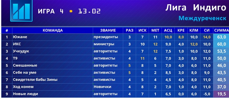 Прошла очередная классическая игра Зимнего сезона от квиза «Лига Индиго».