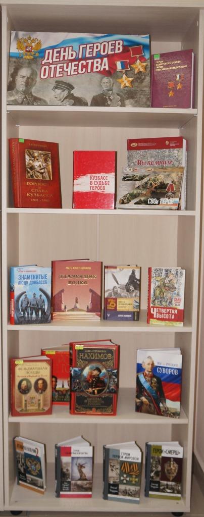 К этой дате в Центральной городской библиотеке оформлена выставка-память «День Героев Отечества». На книжной выставке представлены книги о героях России, а также об истории разных войн. Они помогут совершить исторический экскурс в героическое прошлое России, узнать о славных победах российских войск, которые сыграли важную роль в истории Отечества.