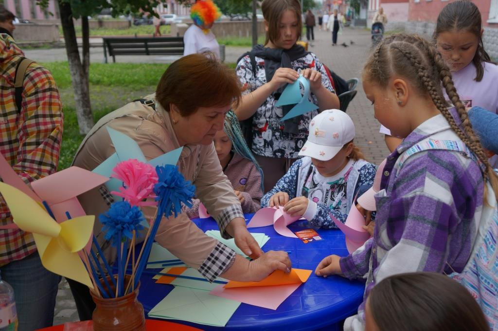 Проспект Коммунистический превратился в оживленный книжный бульвар, где каждая городская библиотека представила свою уникальную программу. Гостей ждали разнообразные мастер-классы, где можно было научиться создавать узоры на ткани, плести браслеты, мастерить ветряные мельницы и яркие цветы, а также изготавливать брелки и даже собственную книгу.
