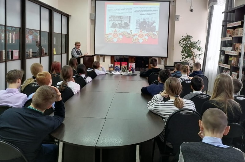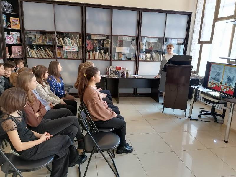 «Сталинград – пылающий адрес войны» – урок мужества к 80-летию разгрома немецко-фашистской армии под Сталинградом. Ребята узнали об итогах и историческом значении этой битвы, о подвигах рядовых солдат и медсестёр. Особый интерес вызвал рассказ о доме Павлова, в котором в течение 58 дней героически держала оборону группа советских бойцов. Учащиеся познакомились с историческими памятниками той великой битвы, посмотрели хронику о мужестве и подвиге жителей города-героя. Завершилась встреча обзором книг о защитниках Сталинграда и викториной.