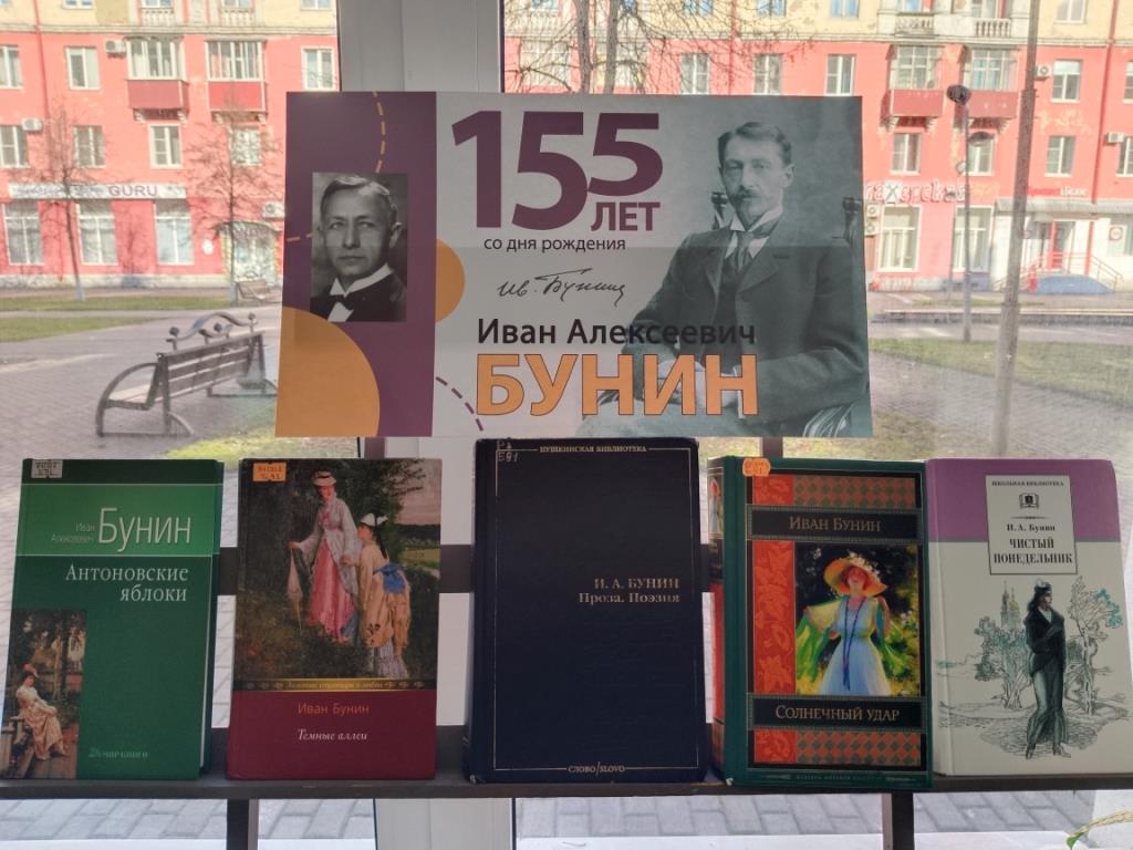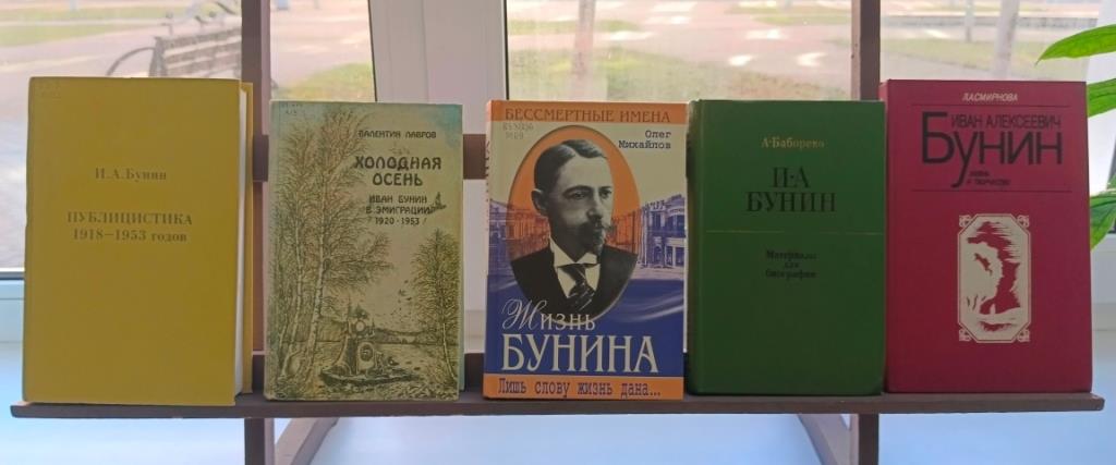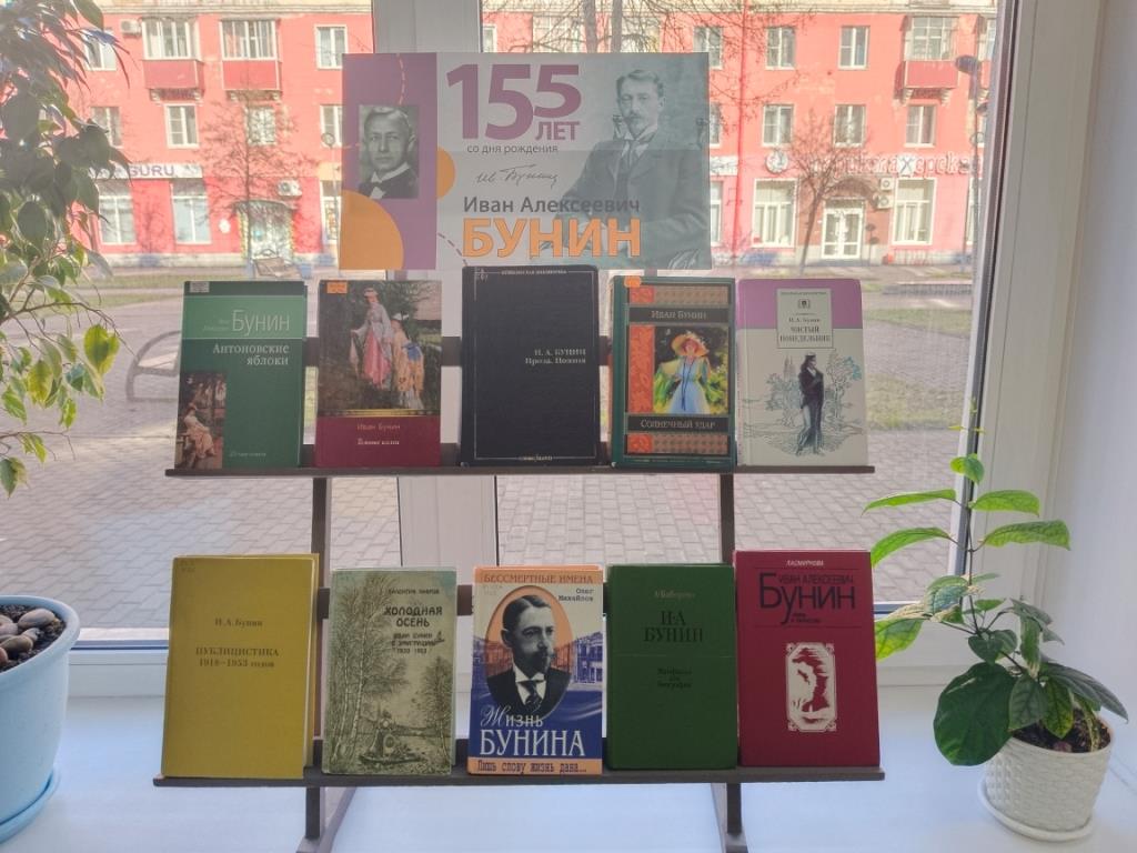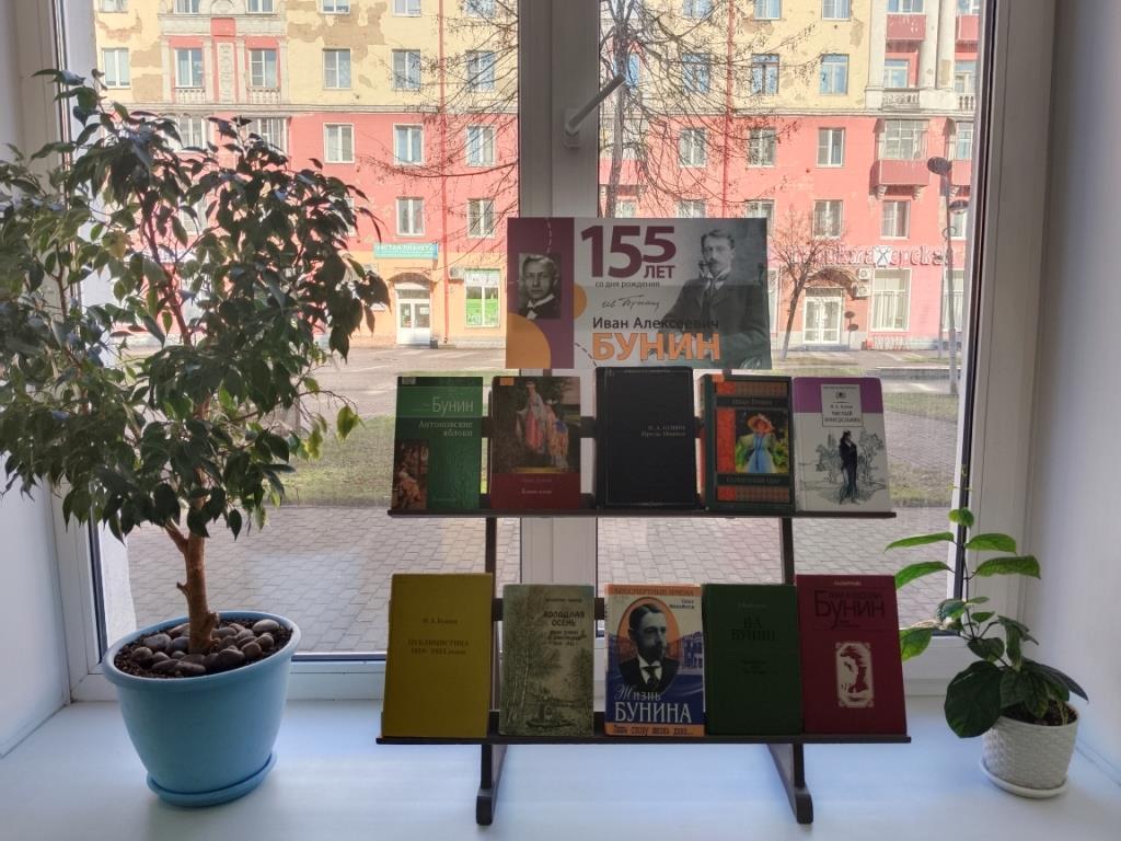 Книжная выставка, посвящённая 155-летию со дня рождения русского писателя, поэта и переводчика, лауреата Нобелевской премии по литературе Ивана Алексеевича Бунина, оформлена в Центральной городской библиотеке.