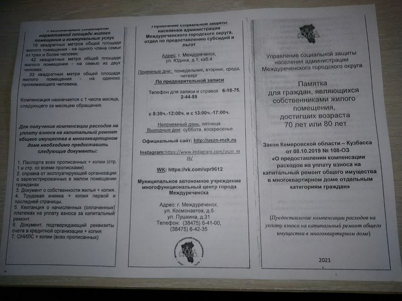 Присутствующие на встрече получили информационный листок «Памятка для граждан, являющихся собственниками жилого помещения достигших 70 лет или 80 лет».