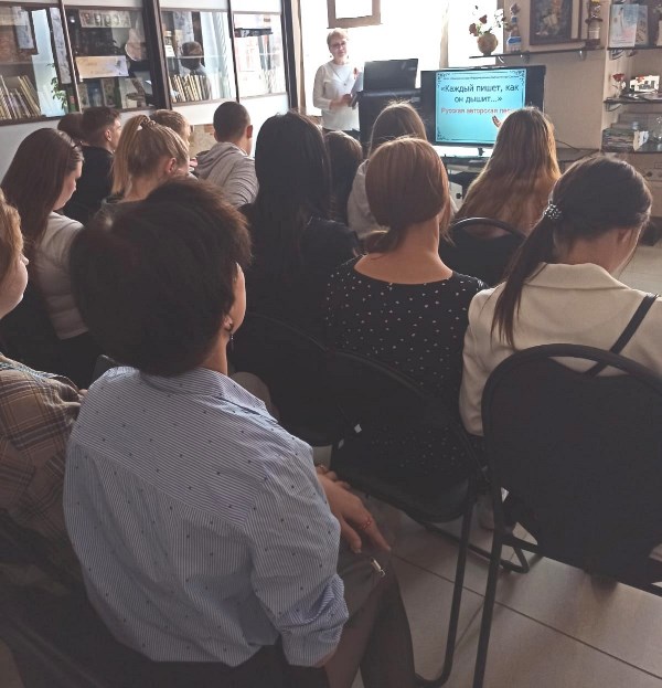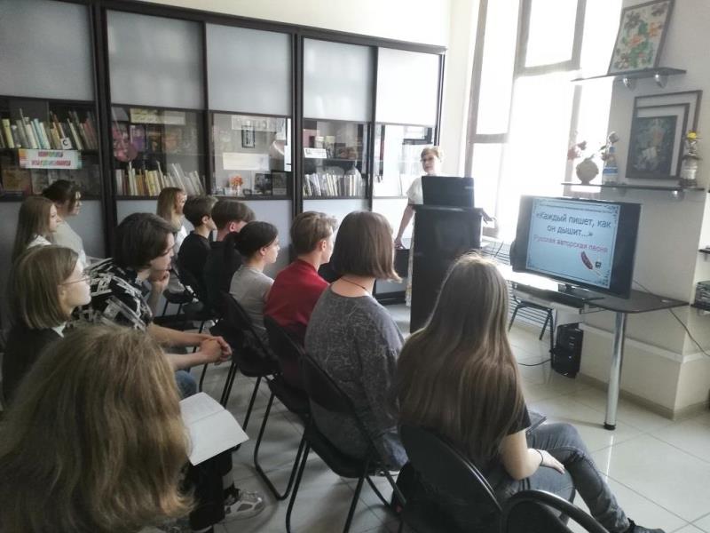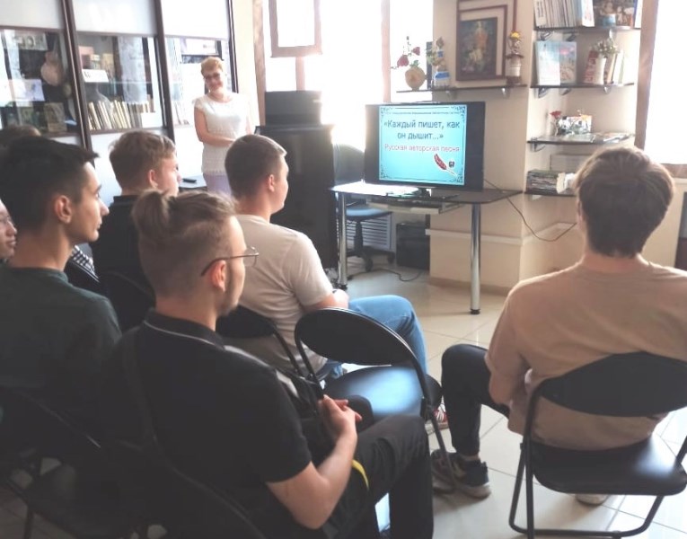 Библиотекарь рассказала о жизни и творчестве Александра Вертинского, Булата Окуджавы, Александра Галича, Юрия Визбора, Владимира Высоцкого, Виктора Цоя и Игоря Талькова.