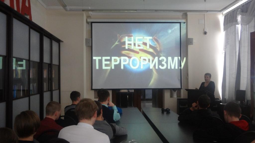 В ходе данного мероприятия студенты междуреченского горно-строительного техникума пополнили свои знания по теме терроризм и экстремизм. В ходе урока были затронуты различные аспекты истории возникновения и развития терроризма. Ребята пытались разобраться, что движет людьми в их намерении отомстить государственным лидерам, политикам или обществу путём террористических и экстремистских акций, в чём причина формирования террористического мировоззрения у молодых людей? Присутствующим предлагалось ответить на вопросы: как себя вести, если: ты оказался в заложниках…; начался штурм здания…; ты обнаружил подозрительный предмет…; ты услышал выстрелы и т.д. В заключение встречи демонстрировался видеосюжет по данной тематике.