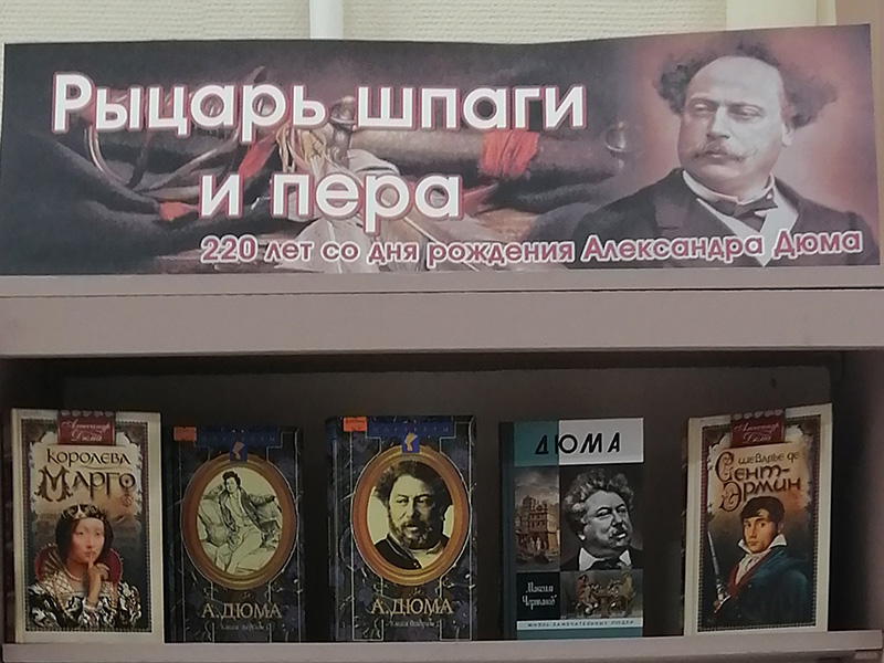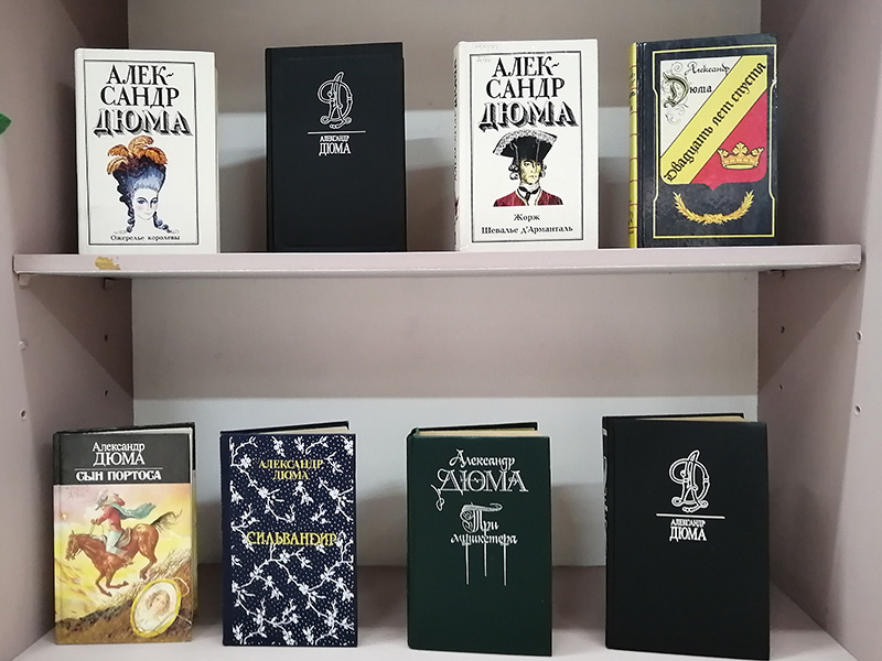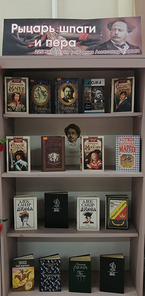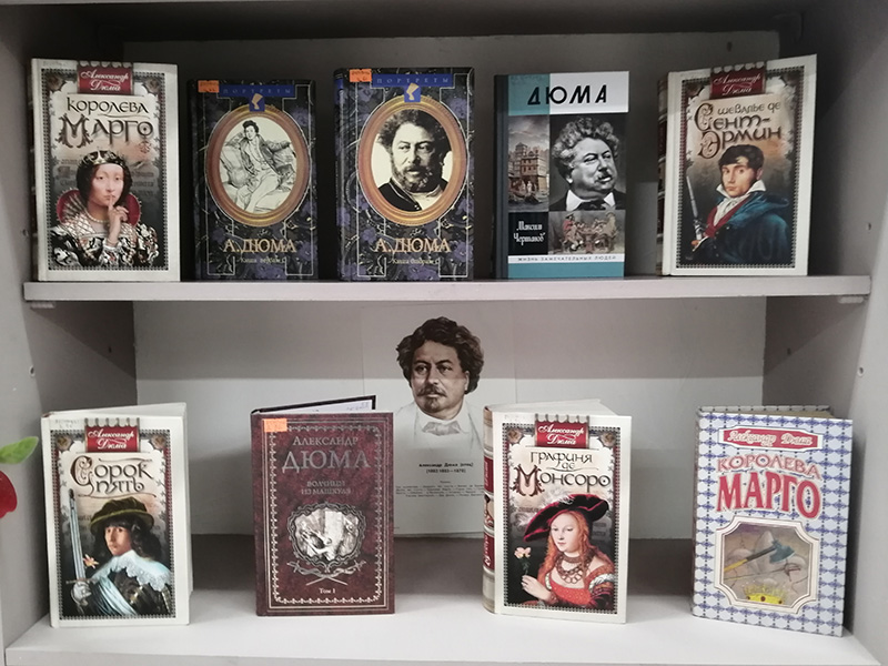 На выставке представлены книги о жизни и творчестве писателя, а также его произведения. Хочется обратить внимание на труд Максима Чертанова «Дюма», изданный в серии «Жизнь замечательных людей». Данный труд является самой полной русскоязычной биографией Александра Дюма и вызывает особый интерес.