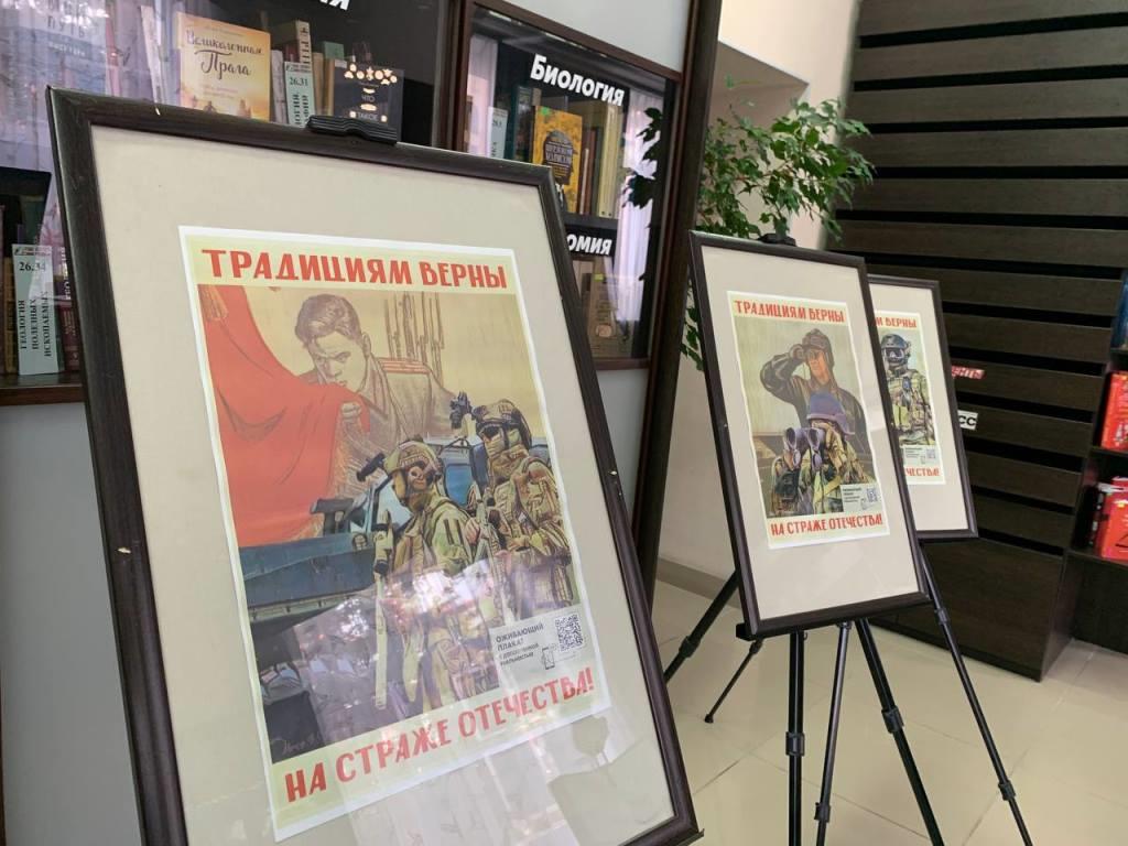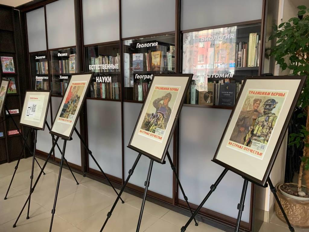 Передвижная выставка представляет собой собрание исторических плакатов времен Великой Отечественной войны. Особое место в ней занимают современные работы с технологией дополненной реальности «Традициям верны. На страже Отечества!». Эти оживающие плакаты создают удивительный мост между прошлым и настоящим, демонстрируя преемственность воинской доблести. На них солдаты Красной Армии героических лет войны стоят плечом к плечу с бойцами специальной военной операции, символизируя неразрывную связь поколений защитников Родины.