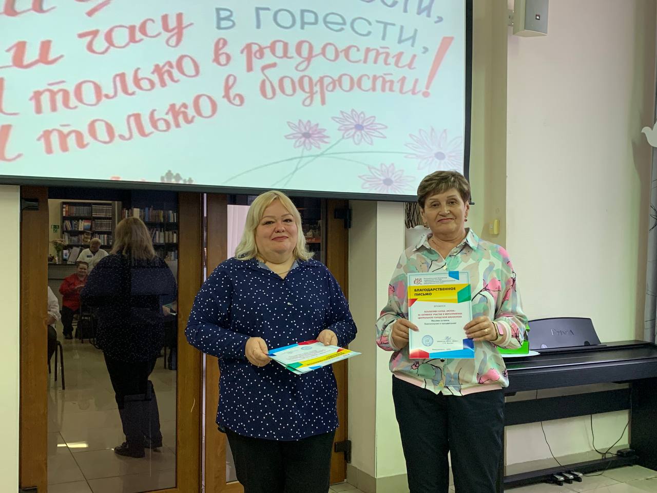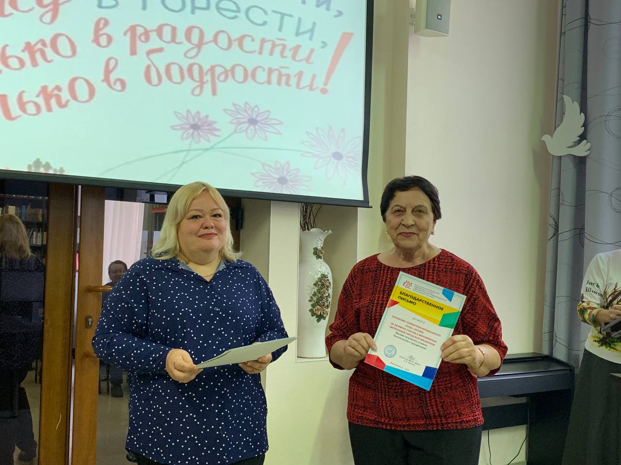 Фестиваль завершился торжественным вручением благодарственных писем от Междуреченской Информационной Библиотечной Системы. Награды получили общественные организации, любительские клубы, работающие с людьми старшего поколения, а также волонтеры.