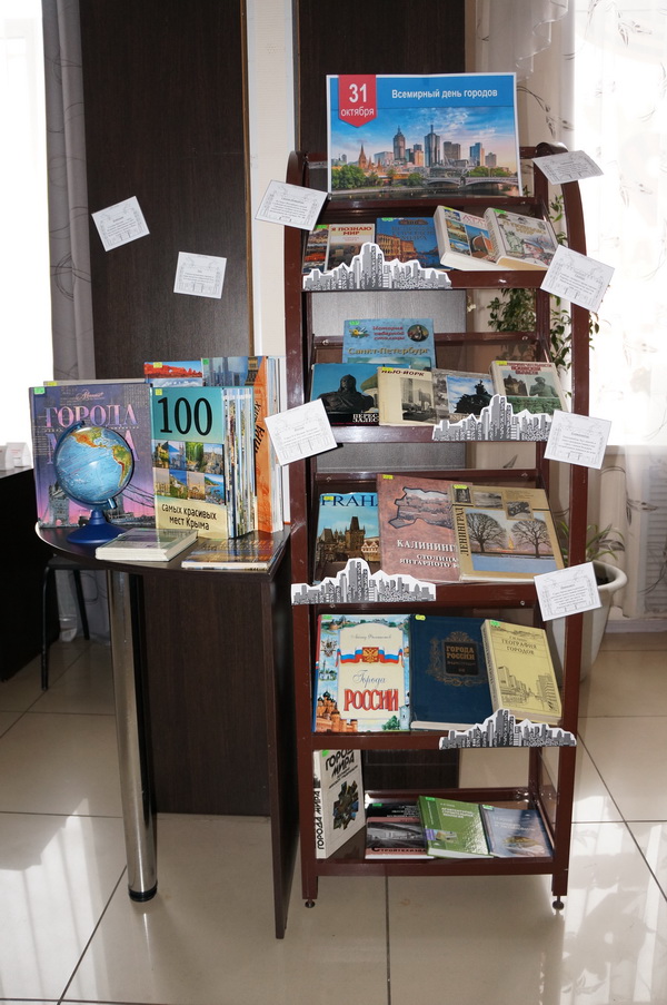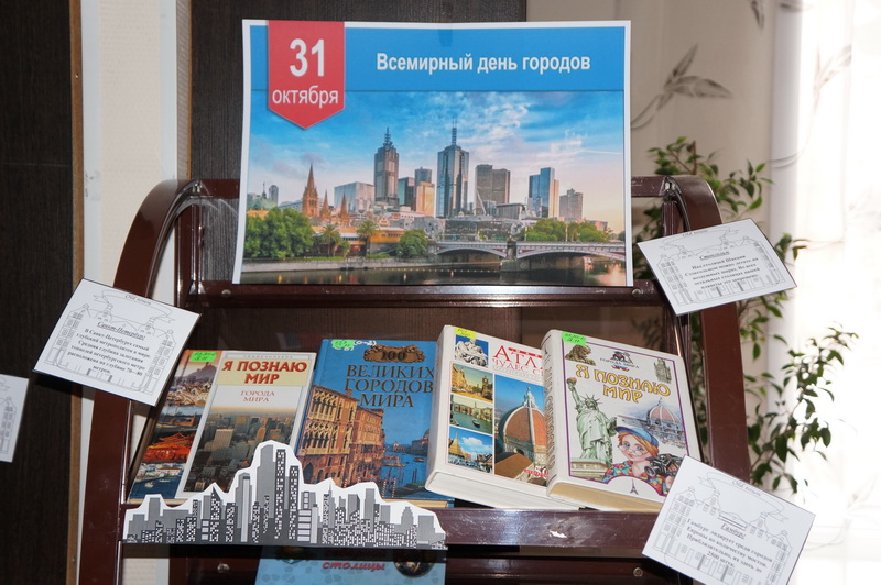 Библиотека не осталась в стороне, и предлагает книжную выставку, которая познакомит читателей с многообразием городов мира, с их достопримечательностями, не обычной историей и современным развитием, а также, что немало важно, с проблемами урбанизации.