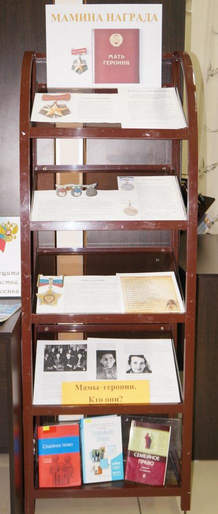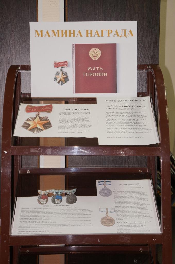 С 22 ноября по 26 ноября в Центральной городской библиотеке организована выставка-досье «Мамина награда!», на которой можно познакомиться с историей учреждения почетного звания «Мать героиня», о наградных выплатах многодетным семьям, в каком размере и как получить их.