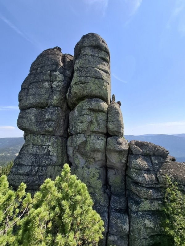 Итак, капсула с кодом и подарок закреплены на кедре, растущем на первом мегалите близ г.Большой Изыгаш. Местное население из-за количества скал величает ещё эту гранитную гору — «Девять Братьев».