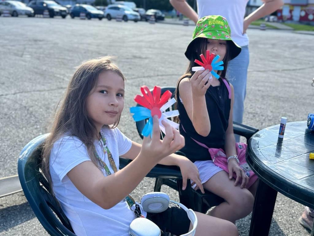Маршрут завершился на площади Весенняя, где участников встречала группа поддержки с развевающимися российскими флагами. Для самых юных гостей сотрудниками Центральной городской библиотеки был организован увлекательный мастер-класс по созданию брошей в цветах национального флага.