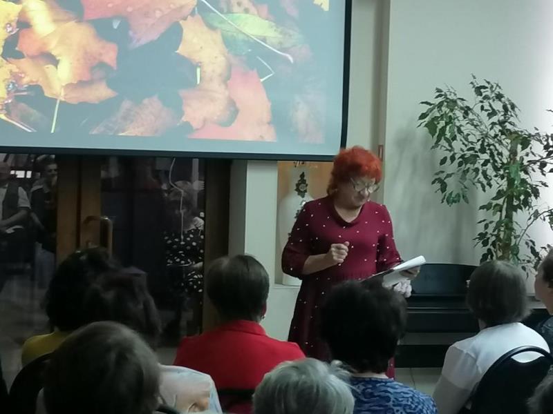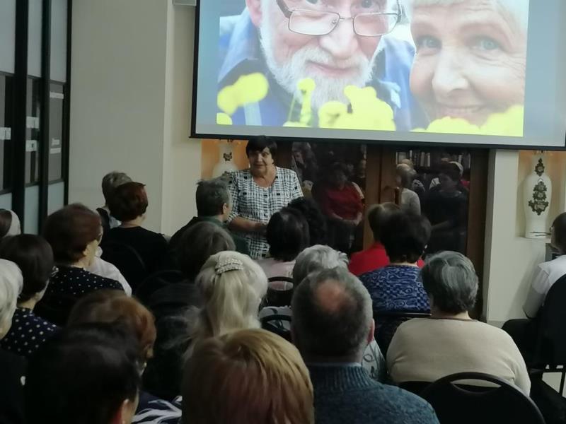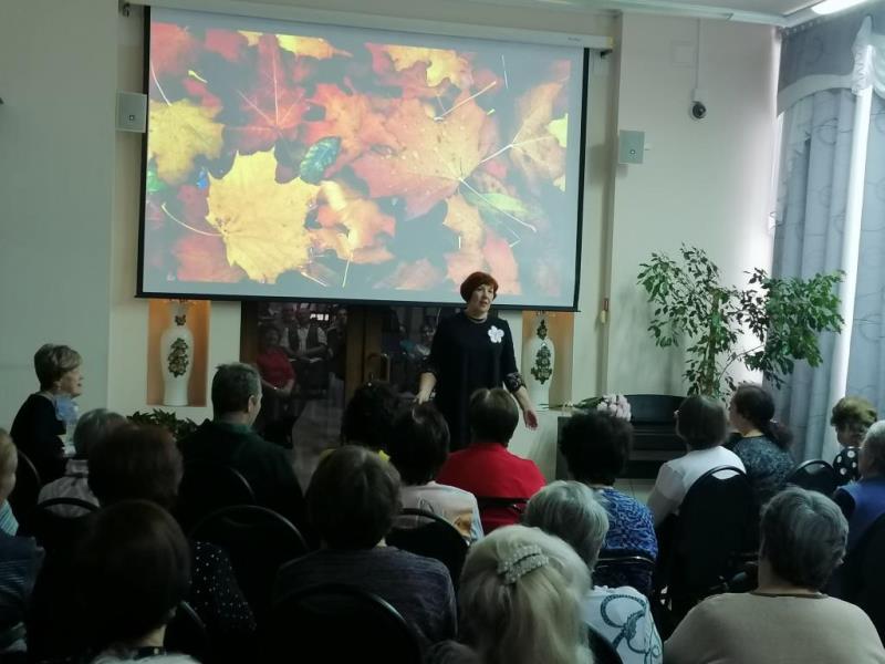 Тема вечера была посвящена зрелой красоте и душевной молодости, мудрости – всему тому, что с годами приобретает человек-труженик. Ведущая Маргарита Перевозкина на протяжении всего концерта, с помощью стихов и музыкальных видеосюжетов, делала акцент на то, что люди золотого возраста могут сохранить свой творческий потенциал, интерес ко многим сторонам жизни – к природе, культуре, образованию, общению. И в подтверждении этого, с импровизированной сцены, звучали стихи в исполнении Седовой Л.А., которой в этом году исполнилось 90 лет. В концерте участвовали члены клубов «Ритм», «Литератор», «Художественное слово». Они читали авторские произведения и стихи известных поэтов.