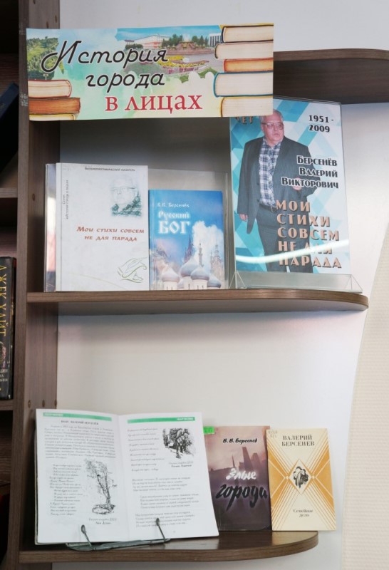В отделе досугового чтения Центральной городской библиотеки открылась книжная выставка из цикла «История города в лицах», посвященная жизни и творчеству Берсенева Валерия Викторовича – поэта и журналиста.