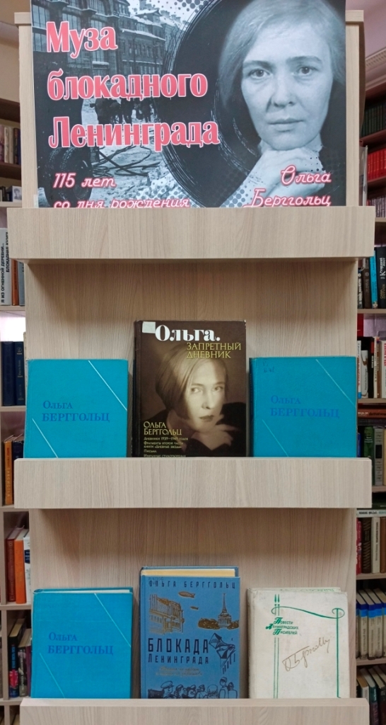 В рамках цикла выставок о писателях-фронтовиках к 80-летию Победы в Великой Отечественной войне в Центральной городской библиотеке открылась книжная выставка «Муза блокадного Ленинграда», посвященная творчеству русской поэтессы Ольги Фёдоровны Берггольц. В этом году 16 мая исполняется 115 лет со дня её рождения (1910-1975).
