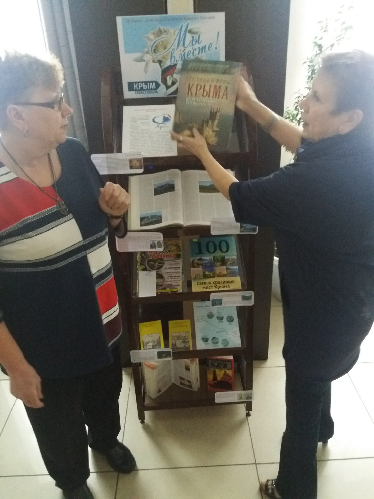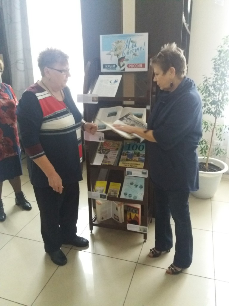 В ходе мероприятия участники обращались к книжной выставке, на которой представлены издания о полуострове Крым, рассказывающие о истории, мифах и легендах, ландшафтесамых красивых и живописных мест.
