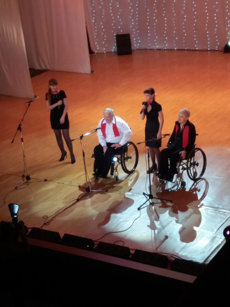 1 декабря в ДК Ленина им. В.Л. в рамках празднования Международного дня инвалидов прошел Городской фестиваль творчества «Мы вместе». В нем приняла участие инклюзивная команда КВН «Свои люди» совместно с работниками Центральной городской библиотеки Жуковой Аленой Владимировной и Филимоновой Ксенией Владимировной. Шутки про инвалидную коляску с DNS, зажигательные песни и актерская игра участников КВН искренне понравились зрителям концерта.