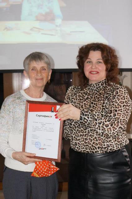 Сертификат единственному в этом году отличнику, сертификаты участникам акции в номинациях «В шаге от пятёрки», «За Тотальную верность грамотности», «За волю к победе», «Тотальная семья» вместе с подарками от спонсоров под громкие аплодисменты вручила директор МБУК МИБС Жукова С.В.