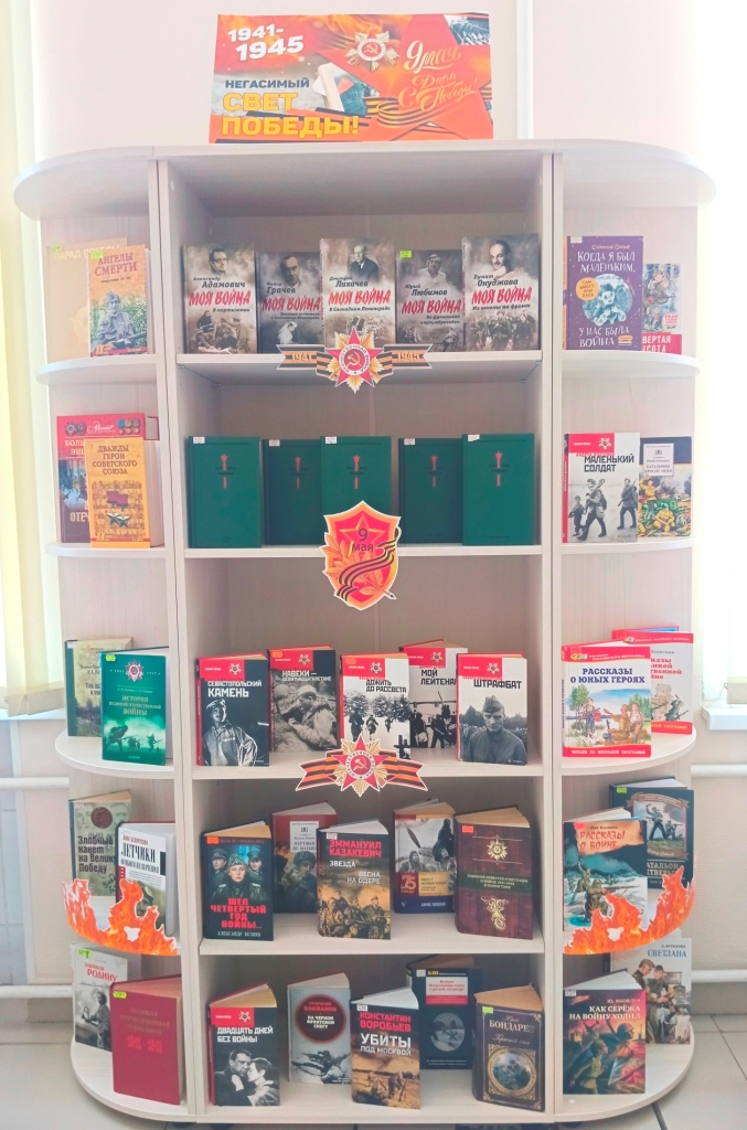 Накануне великого праздника, Дня Победы, в Центральной городской библиотеке открылась выставка-память «Негасимый свет Победы!».