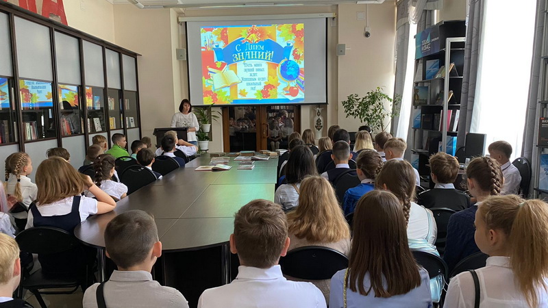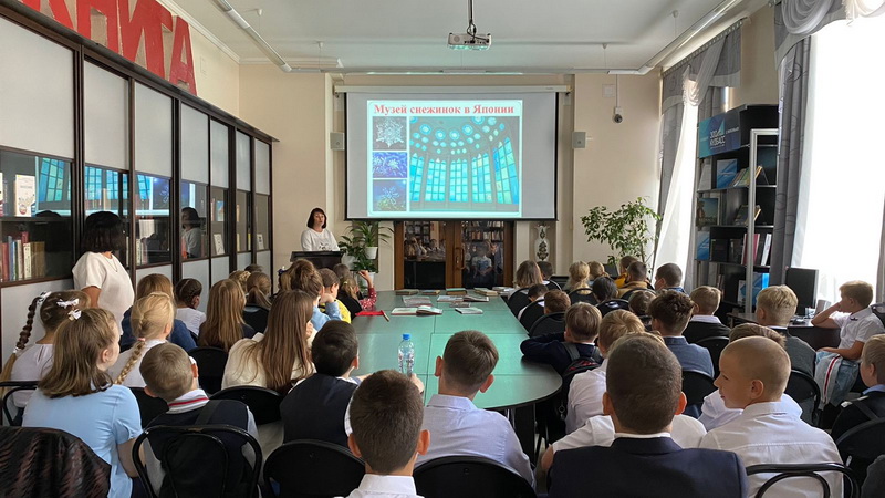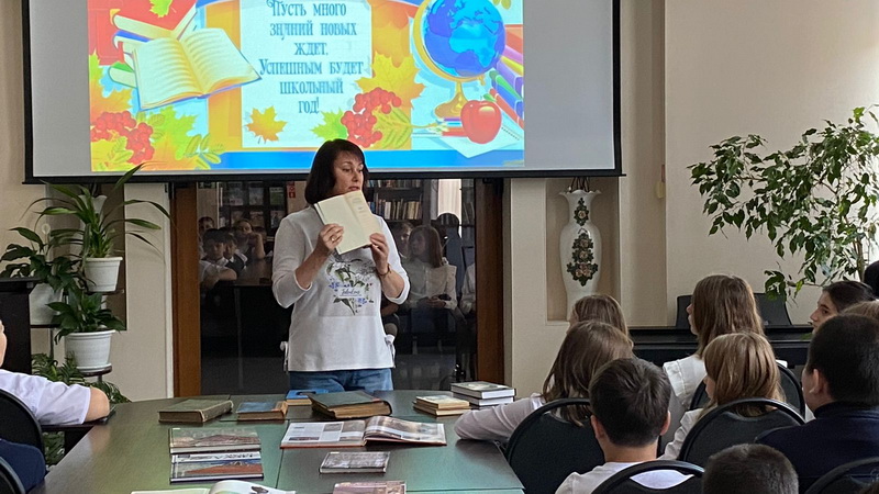 В День знаний учащиеся виртуально побывали в разных странах и городах. Многие из них и не подозревали, как много необычных музеев существует по всему миру. Яркие слайды презентации помогли ребятам посетить музей снежинок, который располагается в Японии, турецкий музей волос и канадский музей обуви. Особый интерес вызвал музей человеческого тела в Нидерландах. Пожалуй, это единственное место на земле, где можно побывать в человеческом сердце, почках и кровеносных сосудах. В таких музеях посетитель всегда найдет что-то удивительное и экстравагантное. Скучать уж точно не придется! Также библиотекарь показала ребятам библиотечные книги, которым больше ста лет.