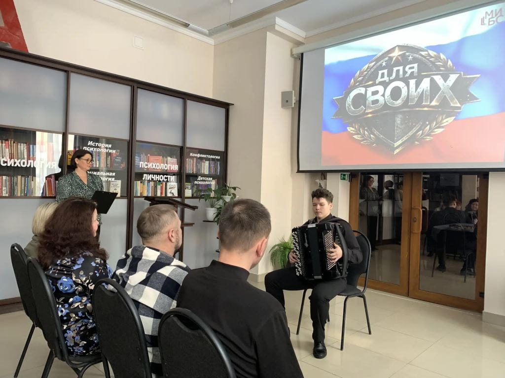 В рамках празднования Дня защитника Отечества в Центральной городской библиотеке состоялось торжественное открытие нового клуба под названием «Для СВОих». Название клуба – «Для СВОих» – отражает его главную идею: объединение и поддержку тех, кто сегодня стоит на защите нашей Родины.