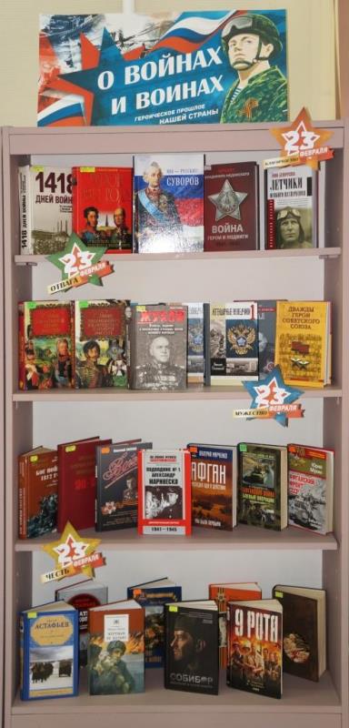 Выставка-просмотр «О войнах и воинах», посвященная государственному празднику России – Дню защитника Отечества, открылась в Центральной городской библиотеке.